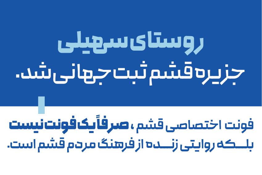 قشم حالا با صدای خودش سخن میگوید. فونت اختصاصی «جزیره جهانی قشم» چهرهای تازه به جزیره بخشیده ، زبانی که از دل تاریخ، طبیعت ،فرهنگ و مردمان این سرزمین برآمده است. هر حرف، تکهای از هویت ماست؛ روایتی از جزیرهای که جهانی مینگرد.