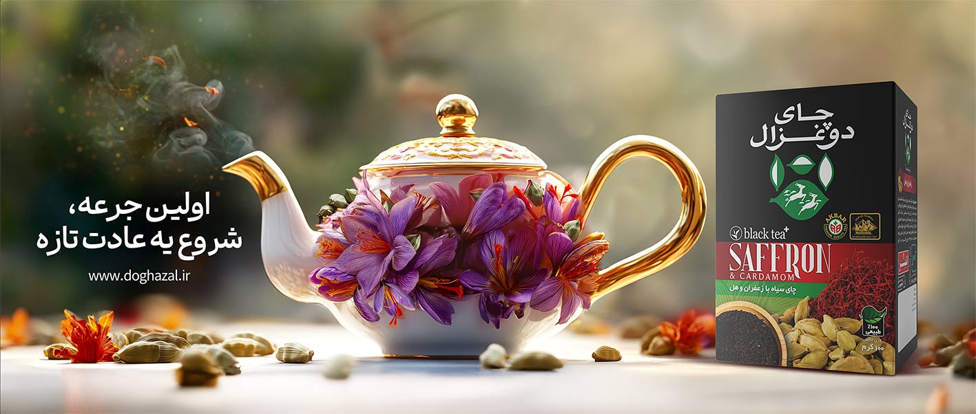طراحی بیلبورد چای دو غزال در این طرح، تلاش کردم عطر طبیعی و طعم تازهی چای را با کنار هم قرار دادن یک قوری کلاسیک در کنار گلهای طبیعی و عناصر تازهی مرکبات، بهصورت بصری نشان دهم. حالوهوای گرم و صمیمی طرح، این پیام را تقویت میکند: