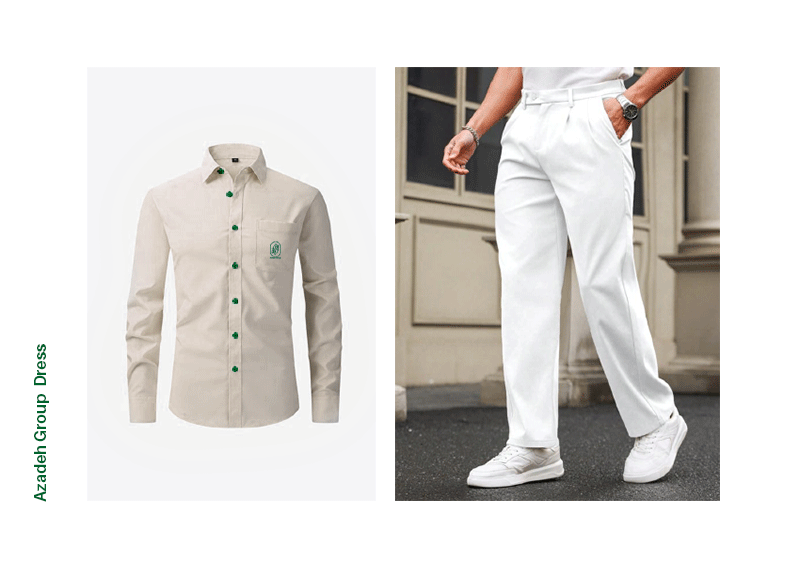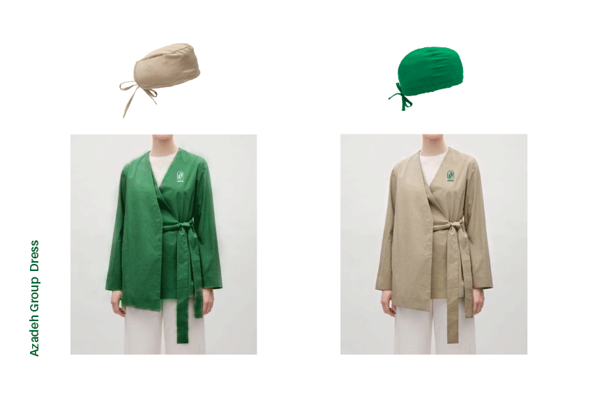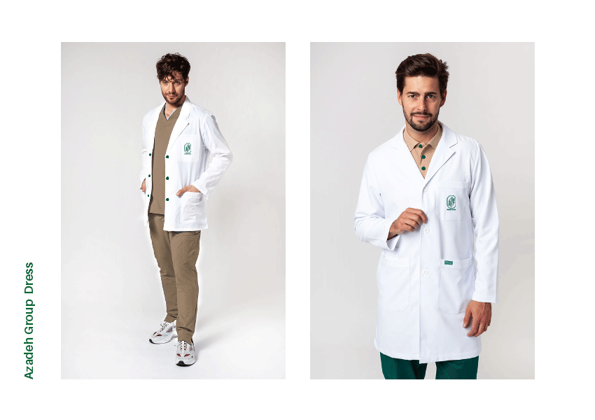فاز سه طراحی هویت برند: طراحی لباس های سازمانی پرسنل خانم و آقا (دکتر و پرسنل فروش) گروه دارویی و آموزشی آزاده( داروخانه شاه میر) لوکیشن: کرج، چهارراه طالقانی