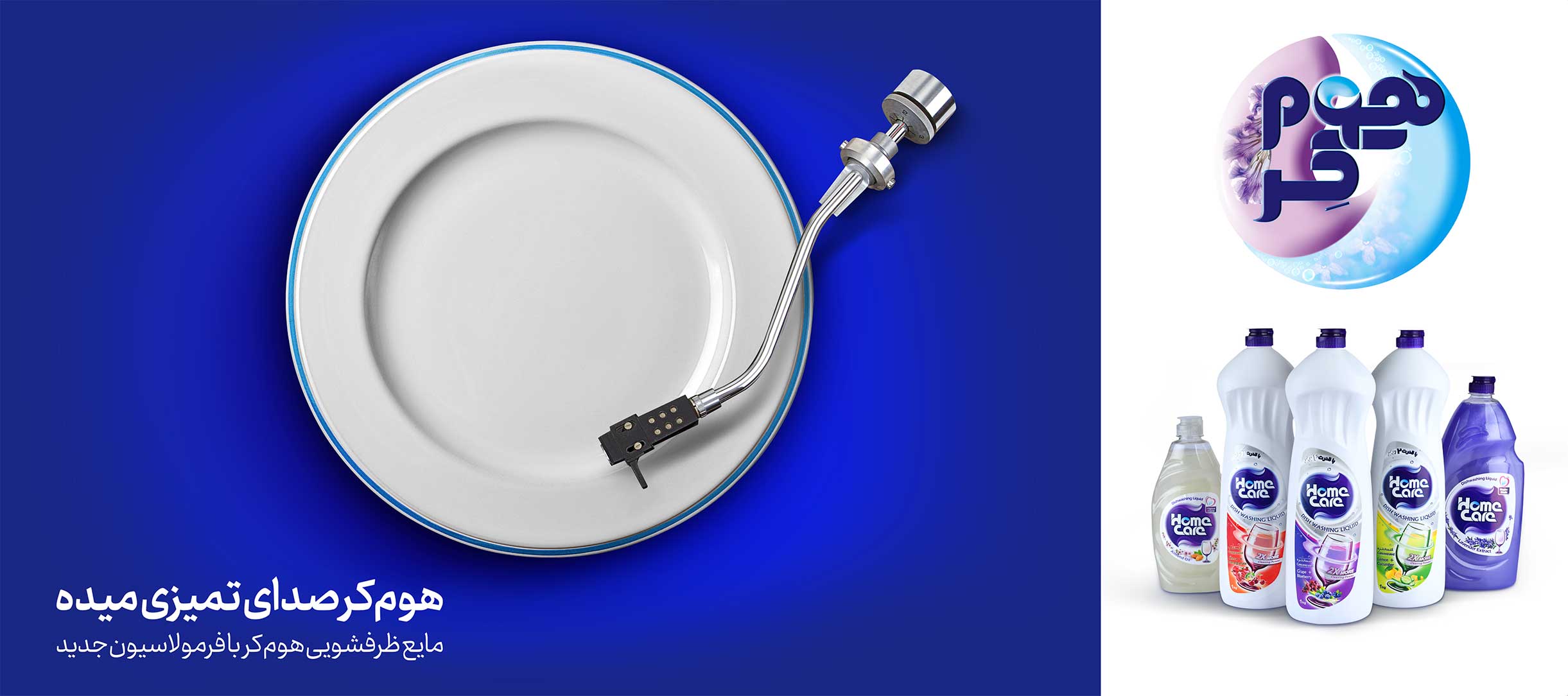 در این بیلبورد برای Home Care از یک کانسپت بصری خلاقانه استفاده شده است: یک بشقاب تمیز به شکل یک صفحهی گرامافون نمایش داده شده. این تصویر نشان میدهد که مایع ظرفشویی آنقدر عمیق و کامل تمیز میکند که انگار میتوانی «صدای» پاکیزگی را بشنوی.