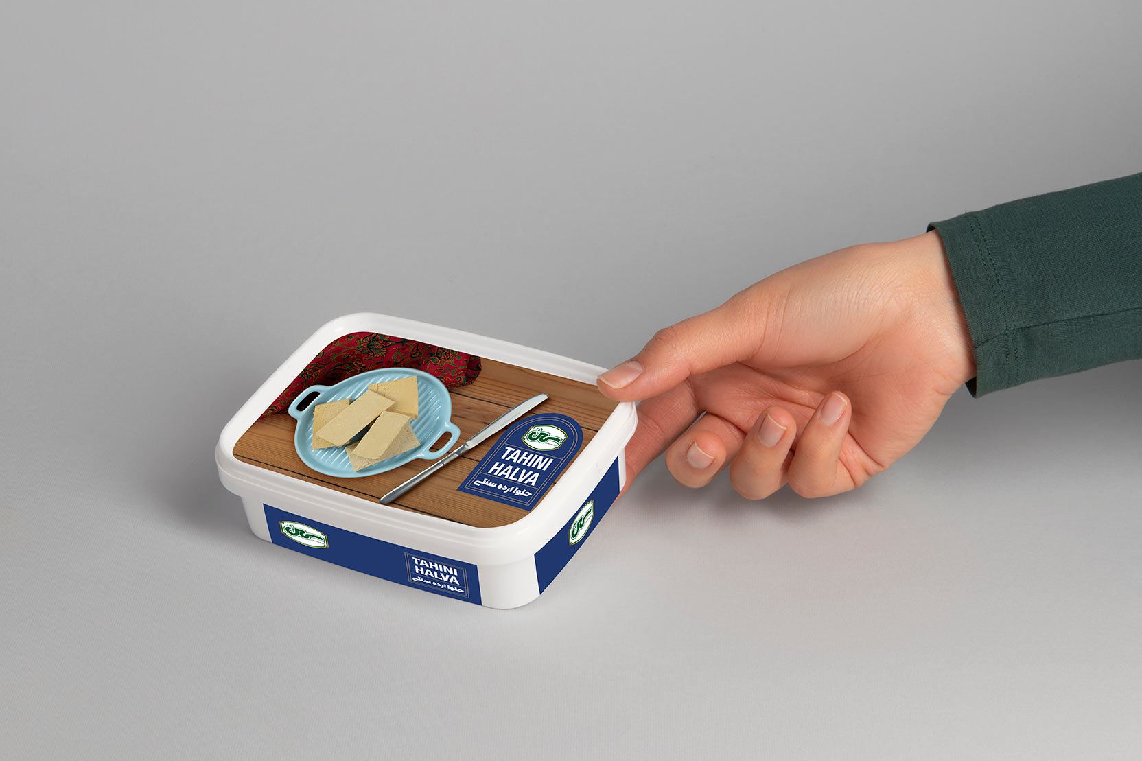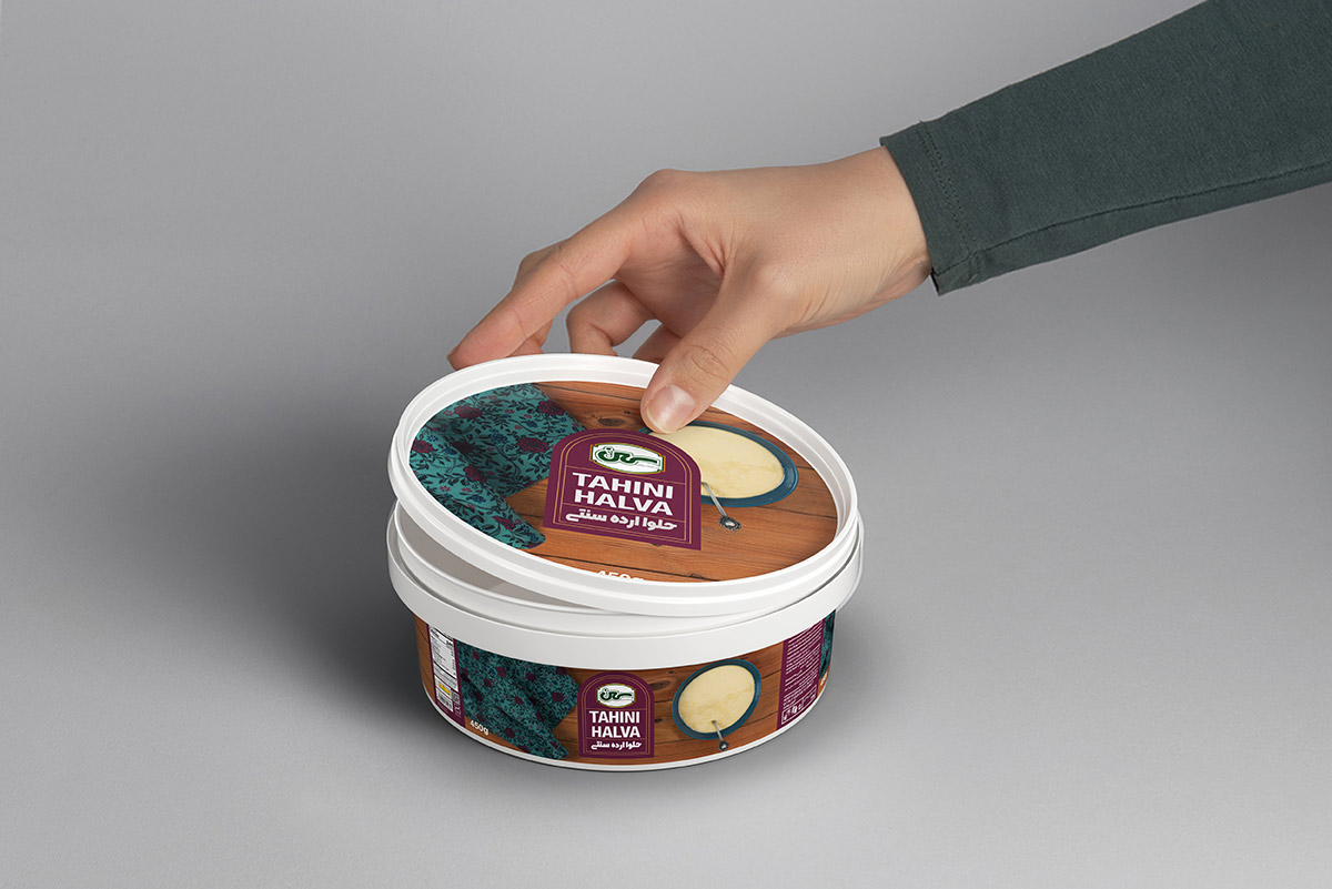 بستهبندی حلواارده سمن با رویکردی سنتی و در عین حال مدرن، برای برجستهکردن اصالت طعم و کیفیت محصول.